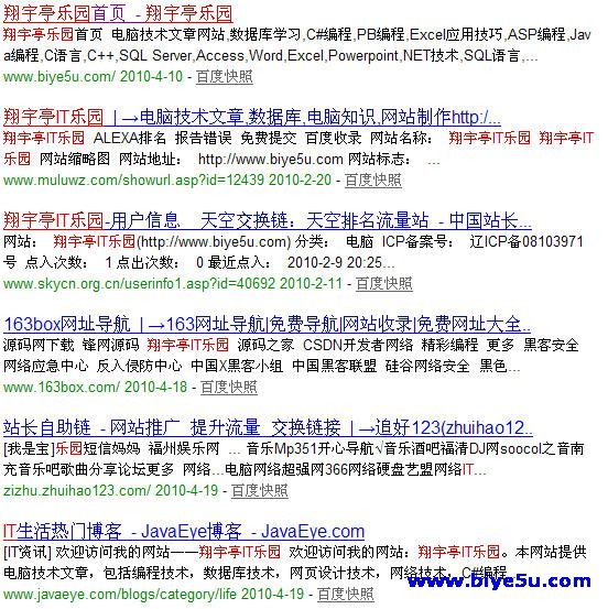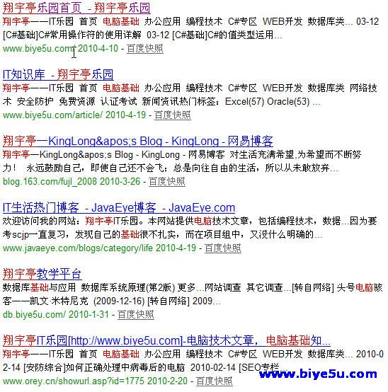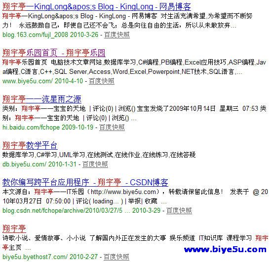 搜索结果:可以看出每个搜索结果都含有“翔宇亭IT乐园”字样