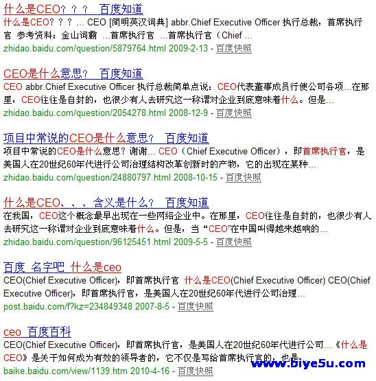 如果你想知道CEO是啥意思,则直接输入"CEO"即可,也可以用“什么是CEO”来找到答案。