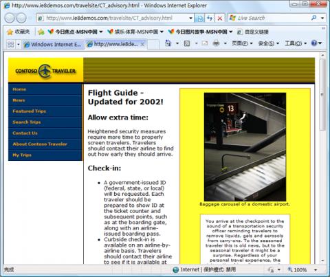 而且您还不用担心每次都需要这么操作,为了不影响您的上网体验,事实上在您点过兼容性视图按钮后,这个网站将会被自动保存到兼容性列表中,下次您再登录这个页面,IE8会自动启用兼容性视图。当然IE8还为您提供了一个一劳永逸的办法,您可以通过简单的设置,将所有的网站都用兼容性视图方式显示。点击IE右侧的“工具”按钮,选择“兼容性视图设置”