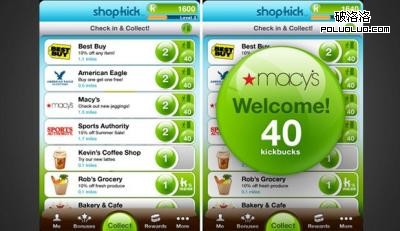 Shopkick改变了很多公司(诸如Best Buy、Target、Macy’s Wet Seal等)给顾客提供奖励和礼券的方法。Shopkick开发出了一种叫作Shopkick Signal的技术。只要你的手机下载了这个App,它就能让用户仅需走进商店就可以获得叫作Kickbucks的购物积分。