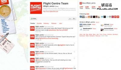 Flight Centre是一家总部在悉尼的国际旅行社。它通过社会化媒体发出广告招聘一个社会化媒体部门的职位。该公司的全球社会化媒体主管Gregg Tilson介绍,公司要求应聘者提供5个社会化媒体账号,一封140个字母的说明信介绍自己为什么适合Flight Centre的职位,然后再提交一份同样140个字母的简历——全部通过Twitter私信发出。