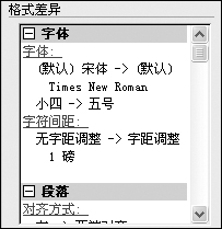 选择要进行比较的第二项格式文本,在“所选文字”下的第二个框中将会显示一个格式示例。在“格式差异”框中将显示两项所选文本的差异的具体说明。