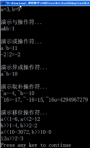 下面简单举个例子来说明以上各位操作符的用法: