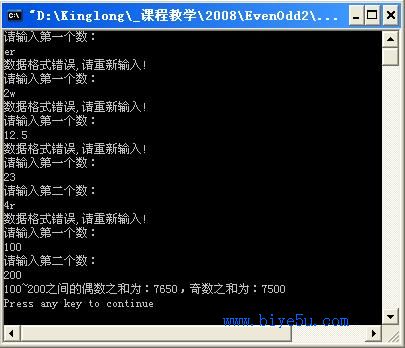 Console.WriteLine("{0}~{1}之间的偶数之和为:{2},奇数之和为: