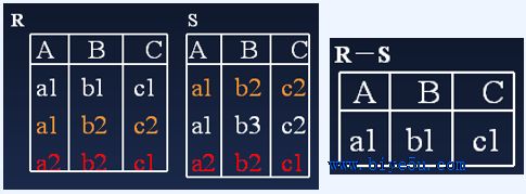 设有下的两个关系R及S,则其差运算的结果如下图右所示