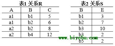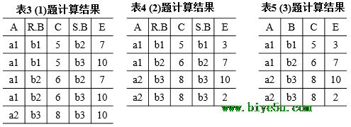 设关系R和S分别由表1、表2给出,请求出下列的关系操作结果: