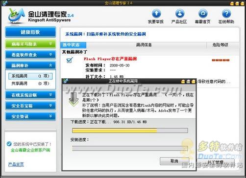 系统漏洞是病毒木马入侵的重要通道,互联网上甚至有一次性批量扫描漏洞、种植木马的工具。奥运期间,反病毒专家估计会有更多病毒利用漏洞疯狂传播。金山清理专家自动安装补丁,有效提升系统防御能力。让意图破坏Peking奥运会黑客的阴谋无法得逞。