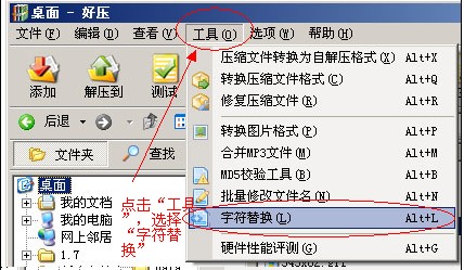 软件安装后点击运行,在主界面上单击“工具”——“字符替换”,