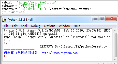 formatedstr = "{webname}的网址是:{weburl}".format(webname = '翔宇亭IT乐园',