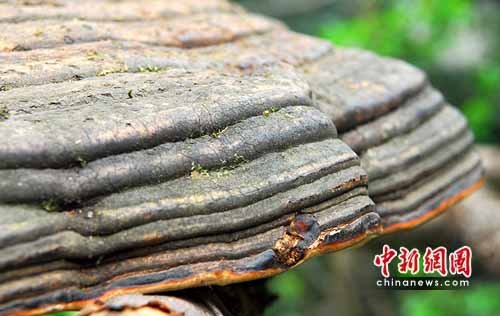 特大野生灵芝菌的边缘似年轮一样的重叠。作 者:巨源